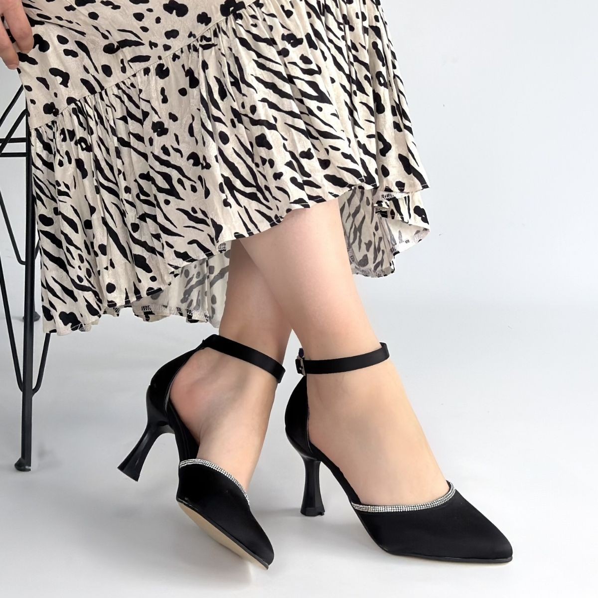 Kadın Konforlu Adım Mejja Siyah Saten Topuklu Ayakkabı