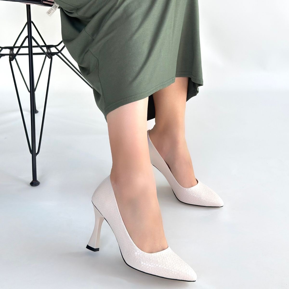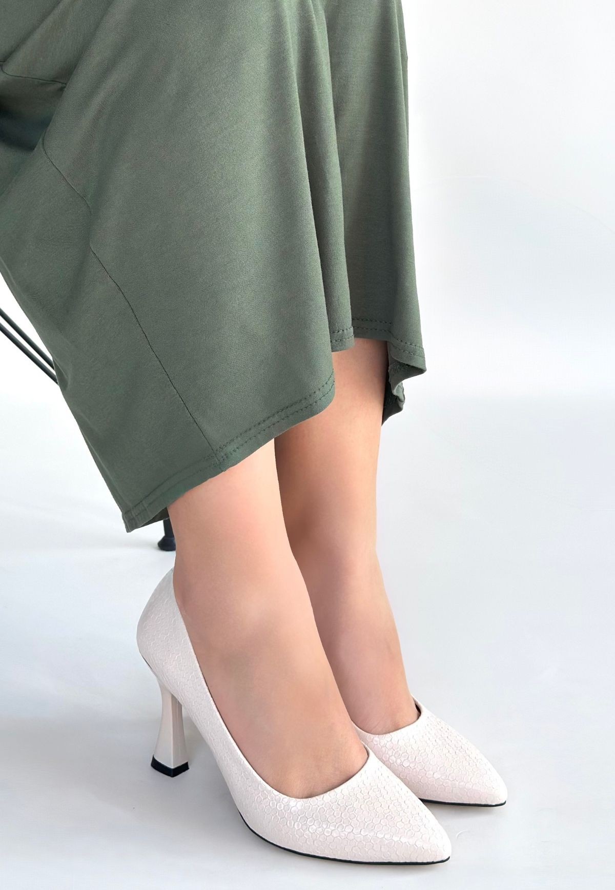 Baskılı Kadın Konforlu Adım Merio Bej Rugan Topuklu Ayakkabı