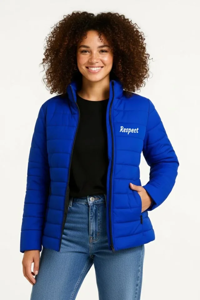 Baskılı Kadın Modern Stil Saks Mavisi Mikro Su İtici Kapitone Astarlı Fermuarlı Bomber Mont