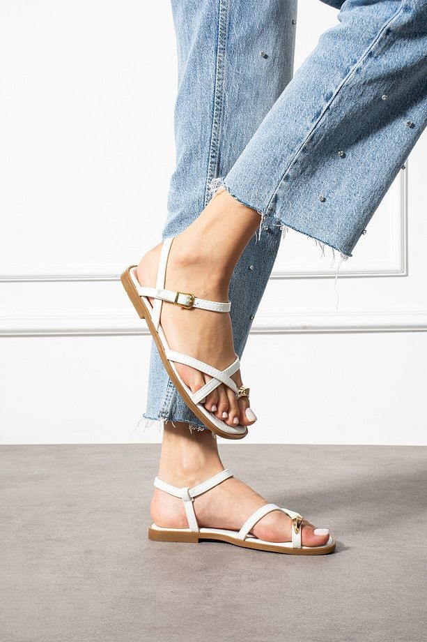 Nordi Beyaz Cilt Kemerli Sandalet