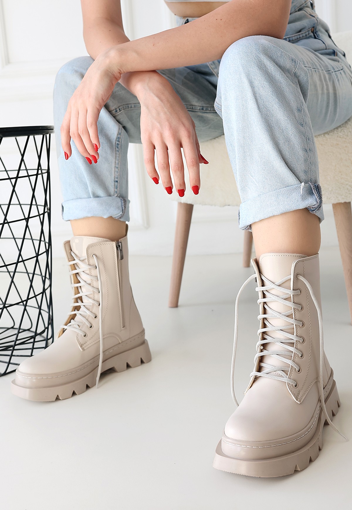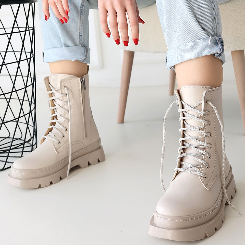 Cilt Kadın Konforlu Adım Orge Bej Bağcıklı Bot