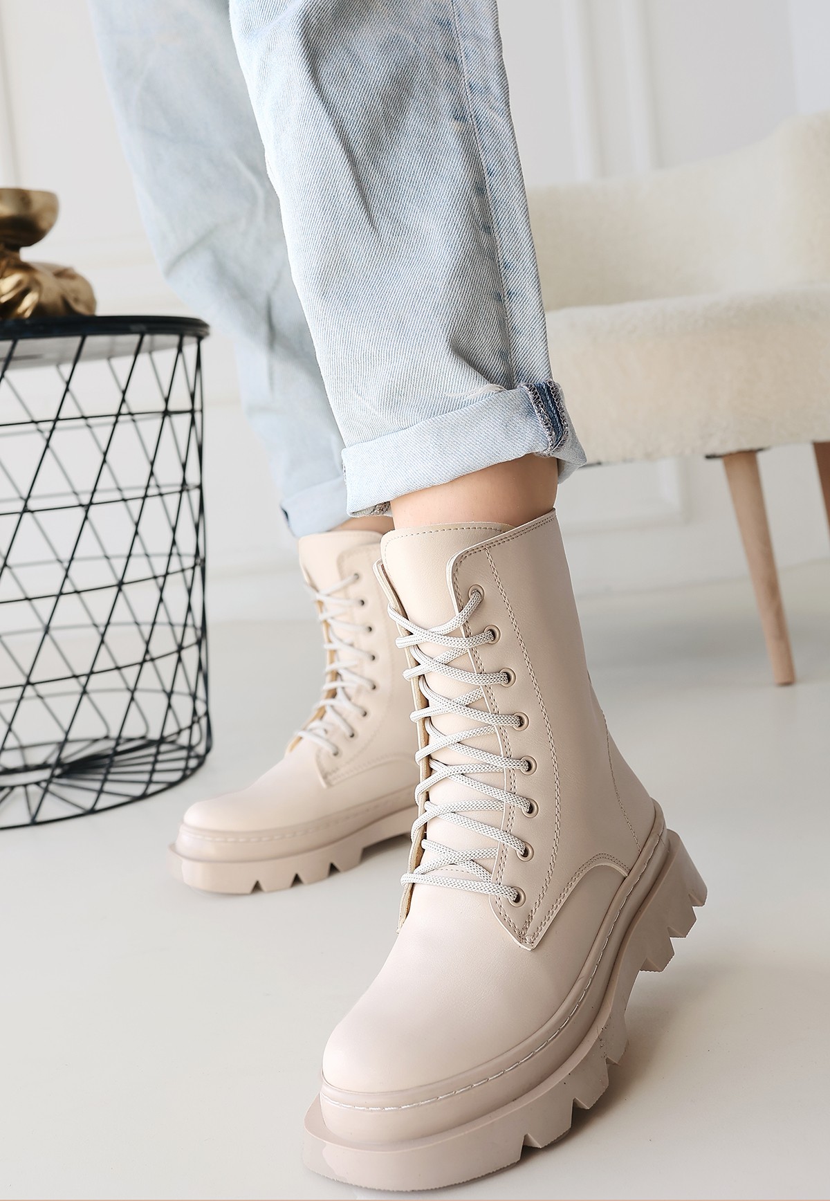 Orge Bej Cilt Bağcıklı Bot