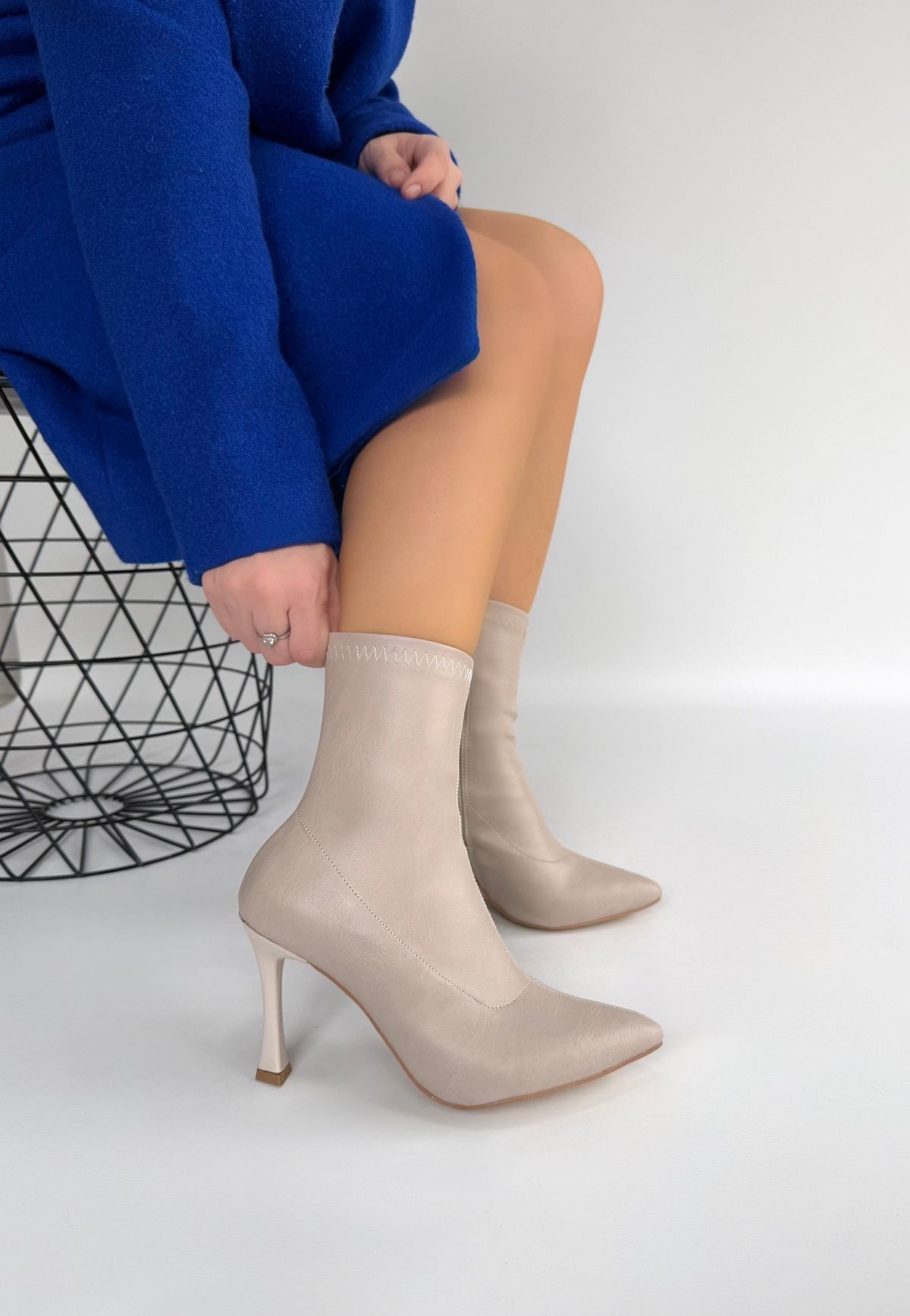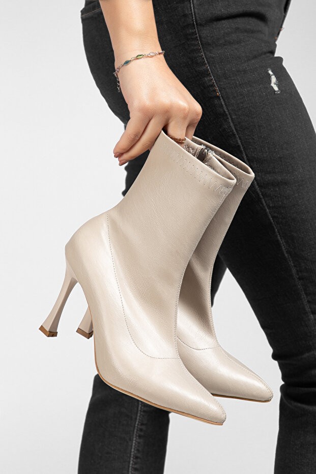 Cilt Kadın Konforlu Adım Orjen Bej Streç Topuklu Bot