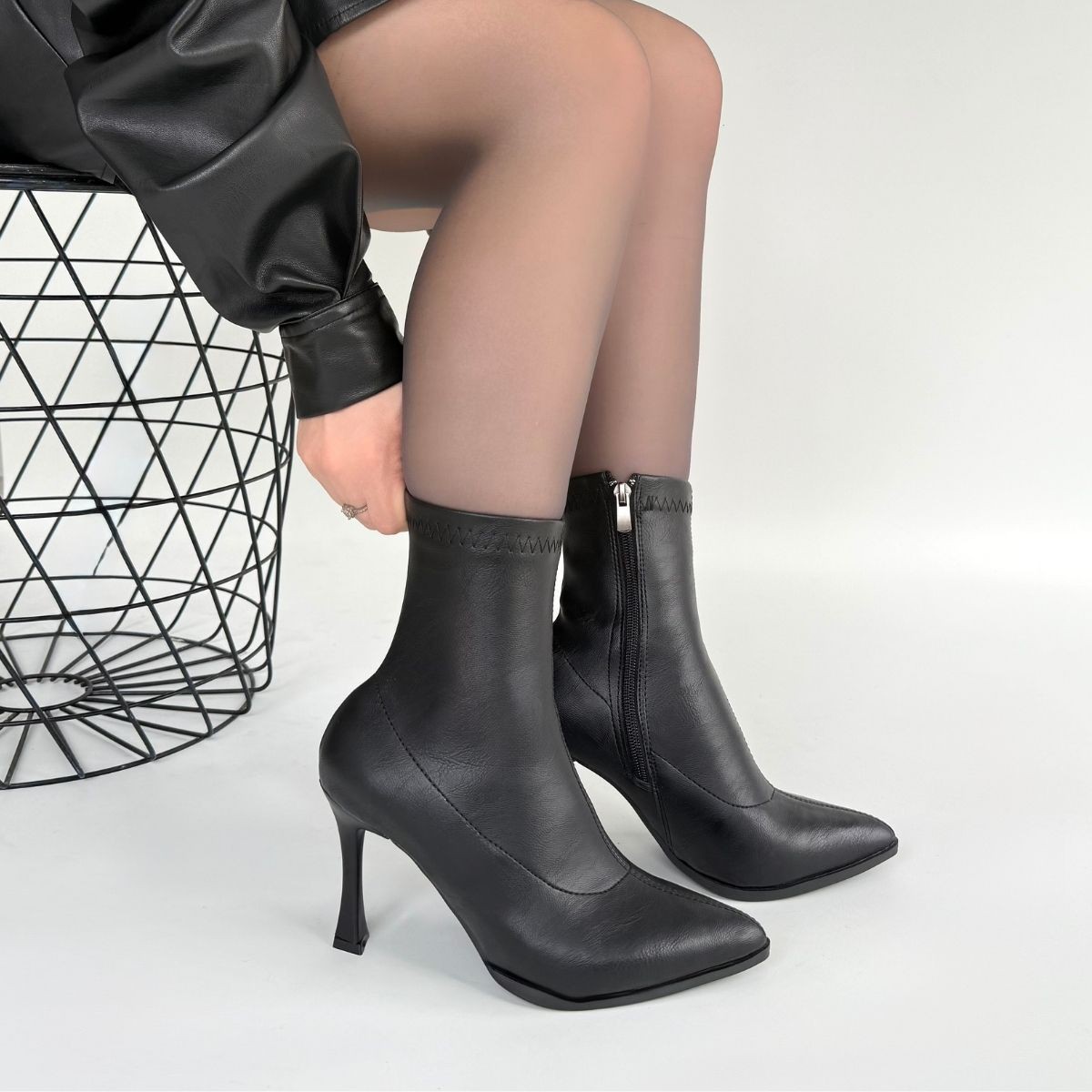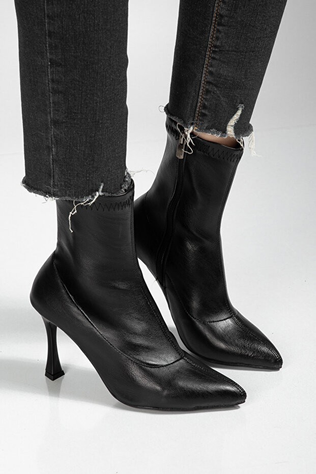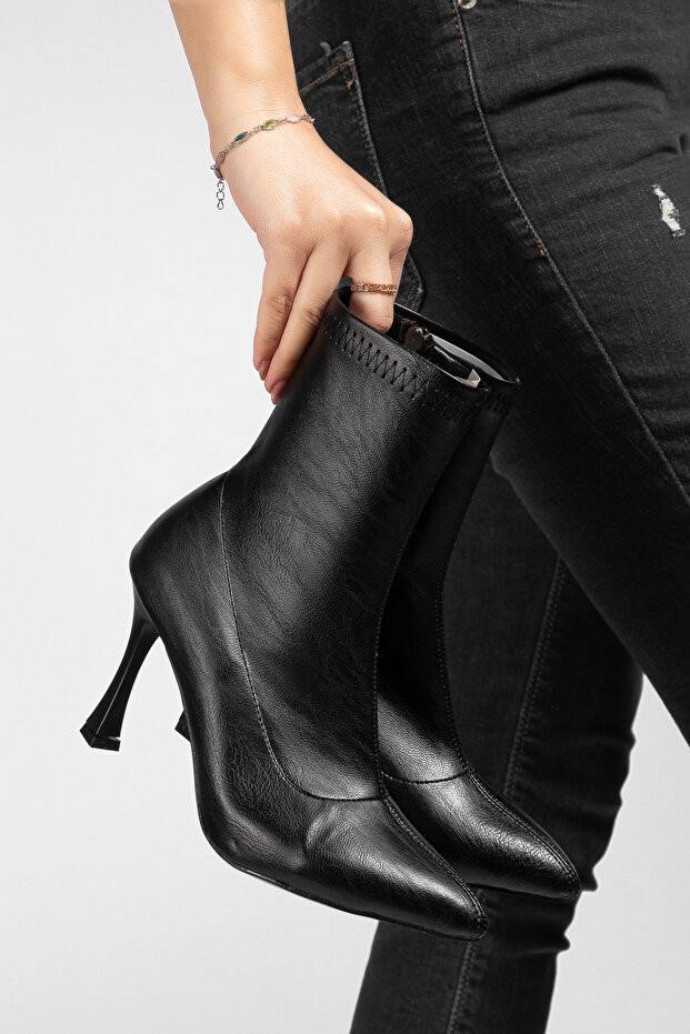 Cilt Kadın Konforlu Adım Orjen Siyah Streç Topuklu Bot