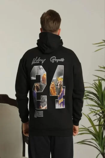Baskılı Erkek Salaş Stil Oversize Üç İplik – Siyah Sırt Ve Ön , Kanguru Cepli, Rahat Kalıp, İçi Pamuklu ModeL-Siyah Kapüşonlu Sweatshirt