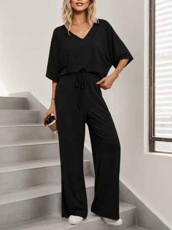 Viskon Kadın Zarif Dokunuş Kısa Kollu V Yakalı Bluz Ve Pantolon İkili Takım