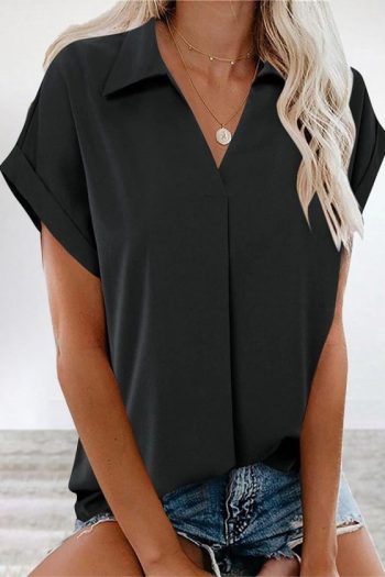 Viskon Kadın Zarif Dokunuş Kısa Kollu V Yaka Dantel Yakalı Bluz