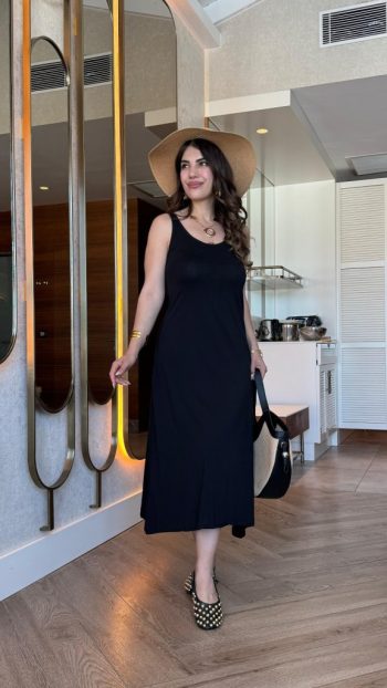 Viskon Kadın Zarif Duruş Askılı Yuvarlak Yakalı Elbise