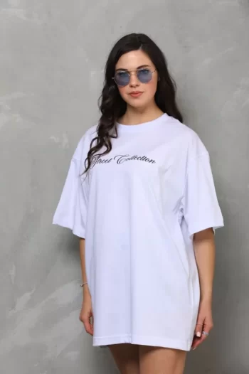 Yazı Detaylı Unisex Günlük Stil Beyaz Bisiklet Yaka Oversize Tişört