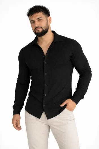 Waffle Kumaş Erkek Rahat Kullanım Siyah Kısa Kollu Gömlek Regular Fit Yazlık İkili Set Şort Takım
