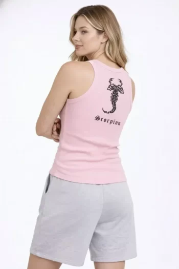 Arka Baskılı Kadın Fit Duruş Mint Yeşili Fitilli Atlet Sıfır Yaka Slim Fit Spor Atlet