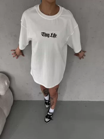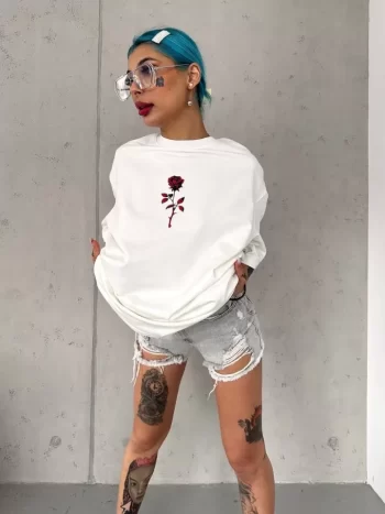 Baskı Detaylı Unisex Günlük Stil Beyaz Soft Touch Oversize Tişört