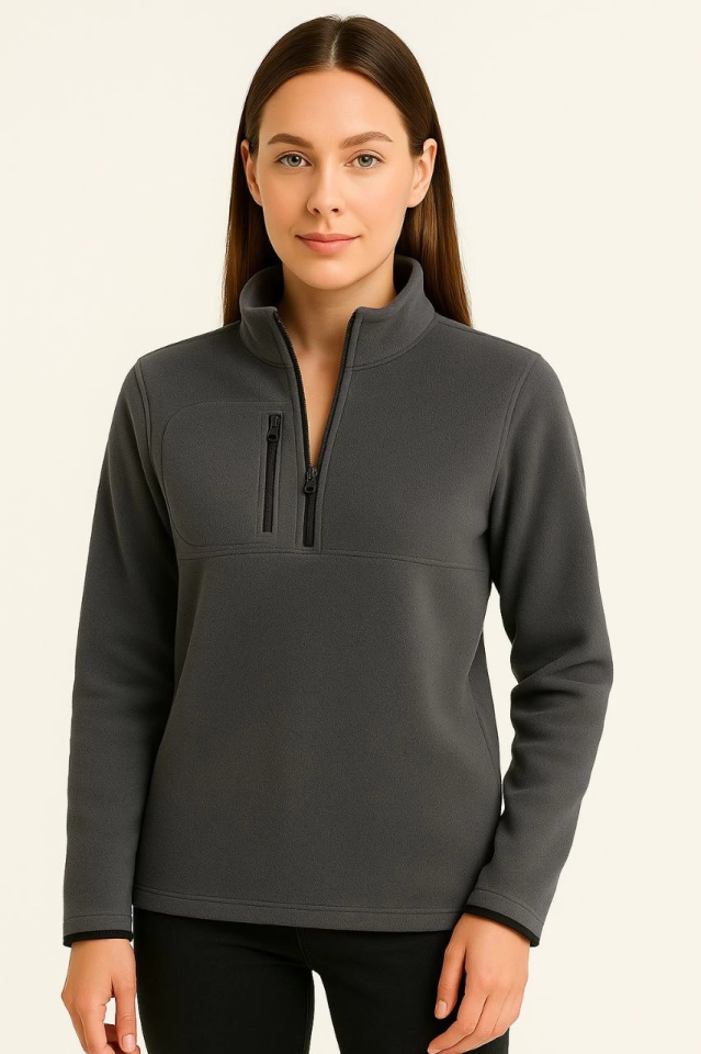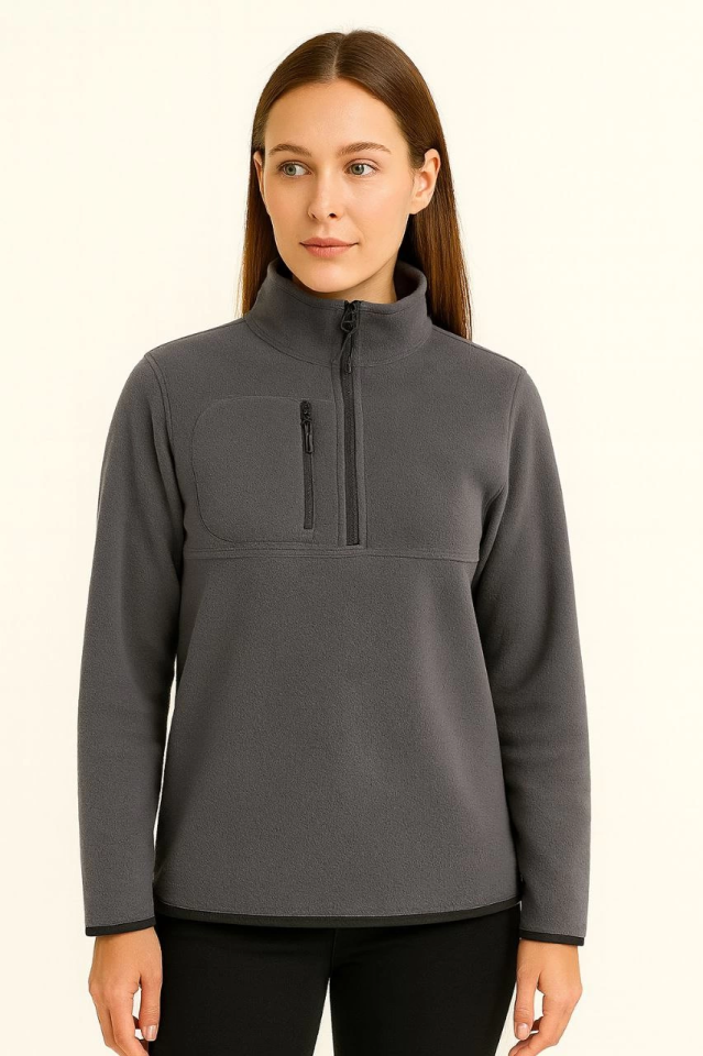 Polar Kazak – Dik Yaka, Yarım Fermuarlı, Fermuarlı Göğüs Cepli, Siyah Biyeli, Kışlık Rahat Regular Fit Günlük Model – Füme
