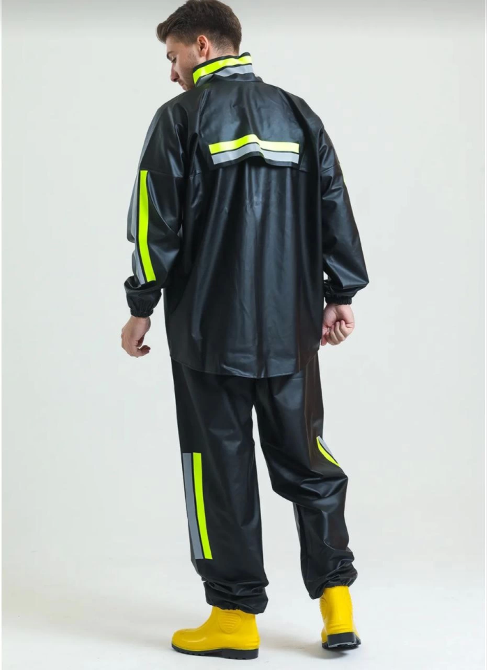 Premium Motorcu Kurye Yağmurluk Takım Su Geçirmez PVC Kumaş Reflektörlü TÜBİTAK Onaylı – Siyah