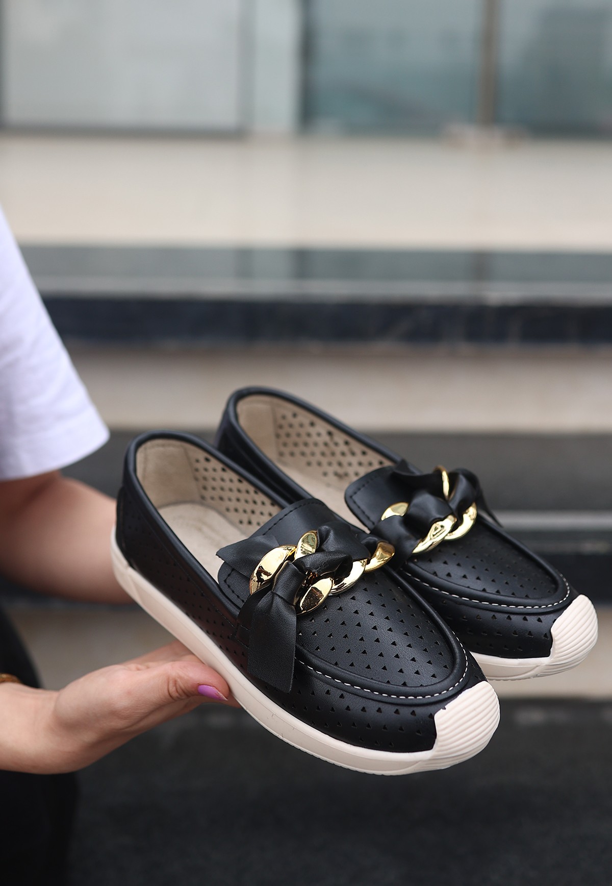 Cilt Kadın Konforlu Adım Riwan Siyah Babet Ayakkabı