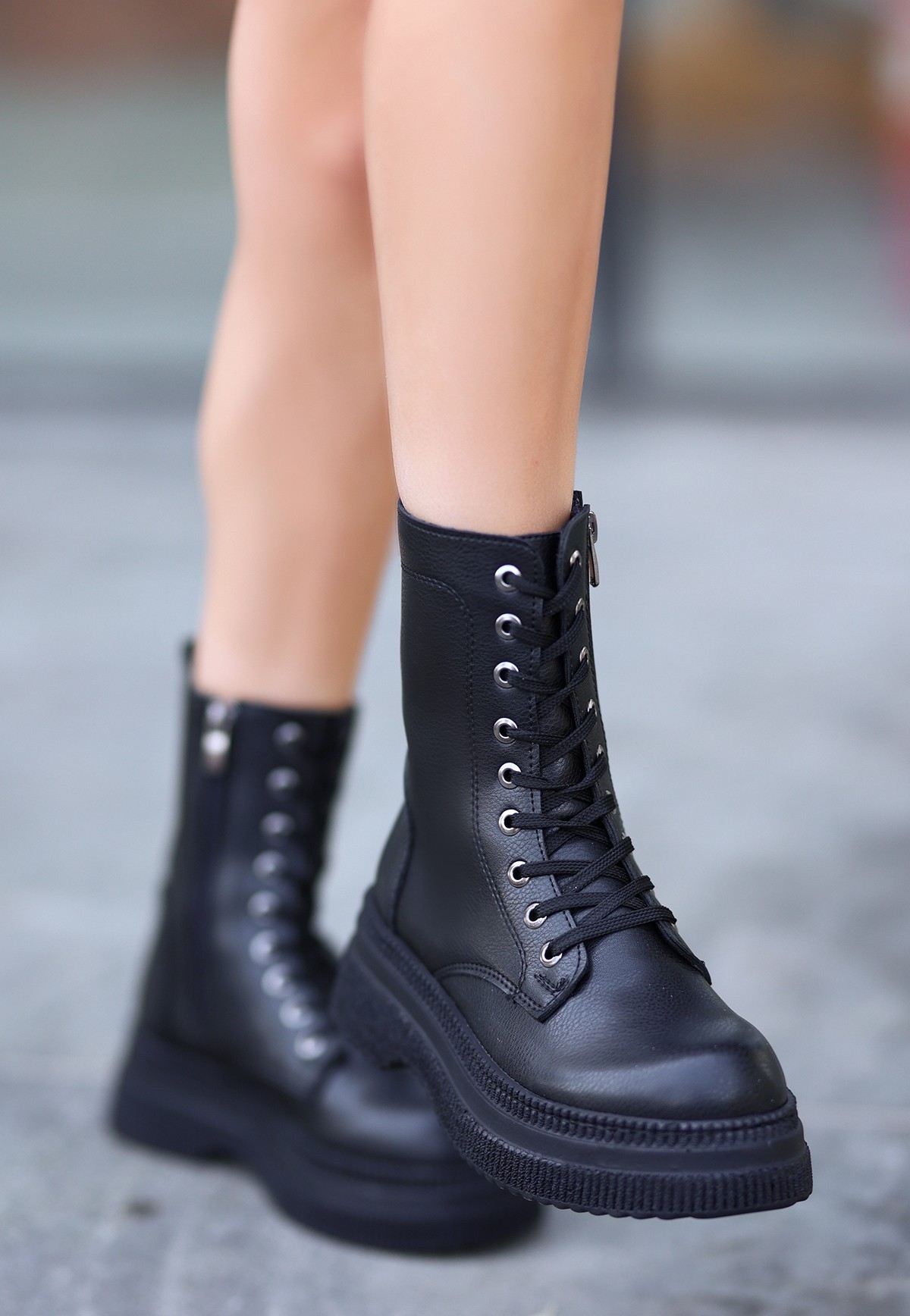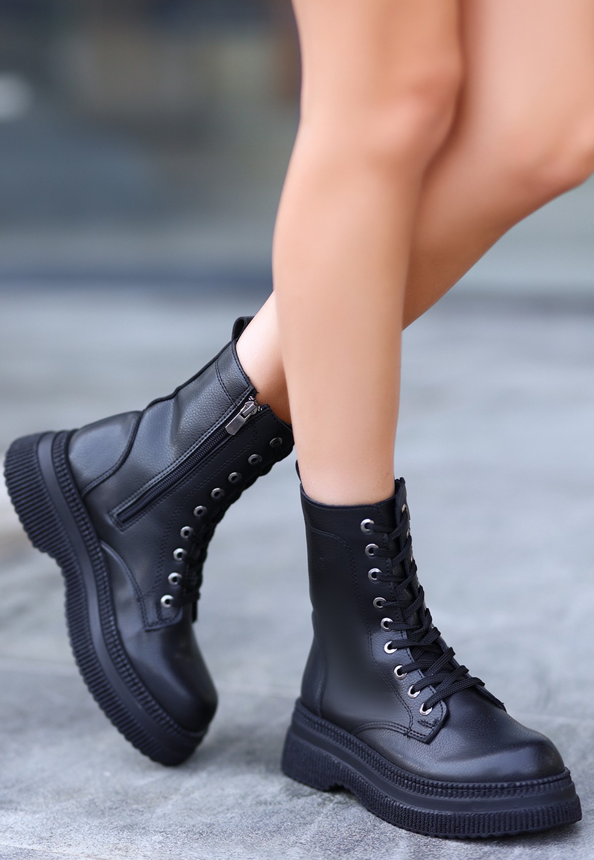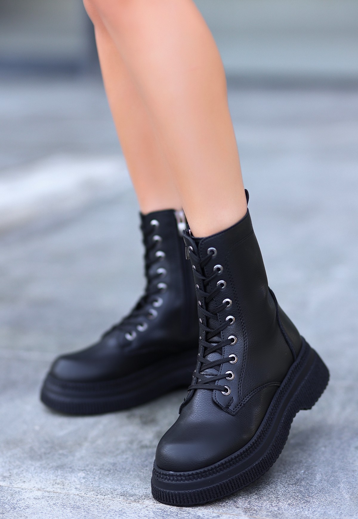 Cilt Kadın Konforlu Adım Roxan Siyah Bağcıklı Bot