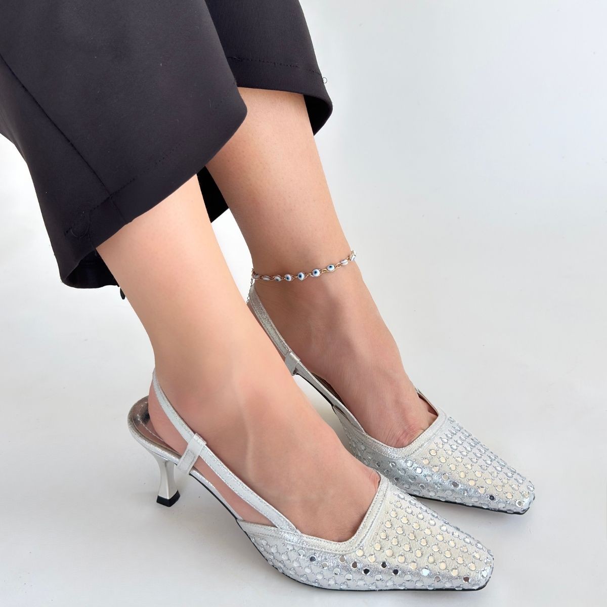 Cilt Kadın Konforlu Adım Sione Gümüş Topuklu Ayakkabı