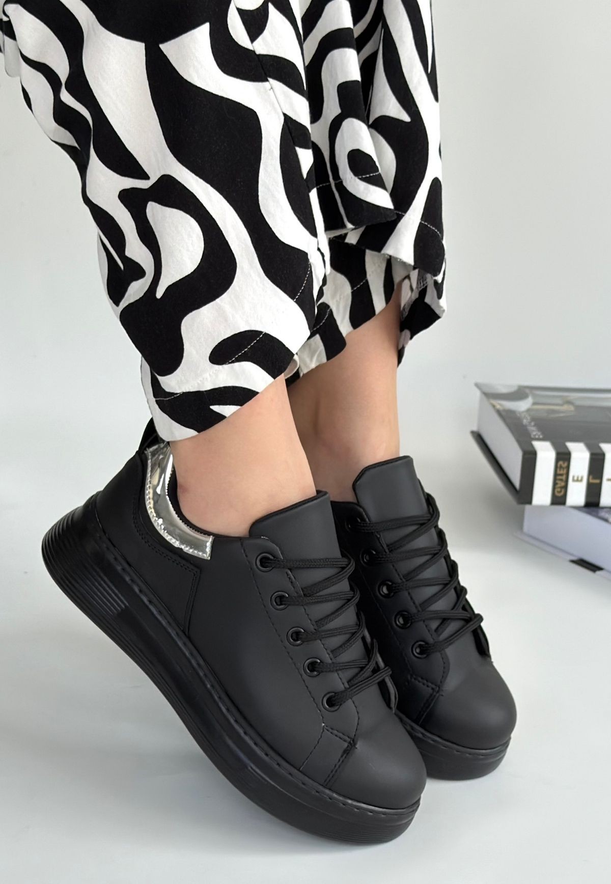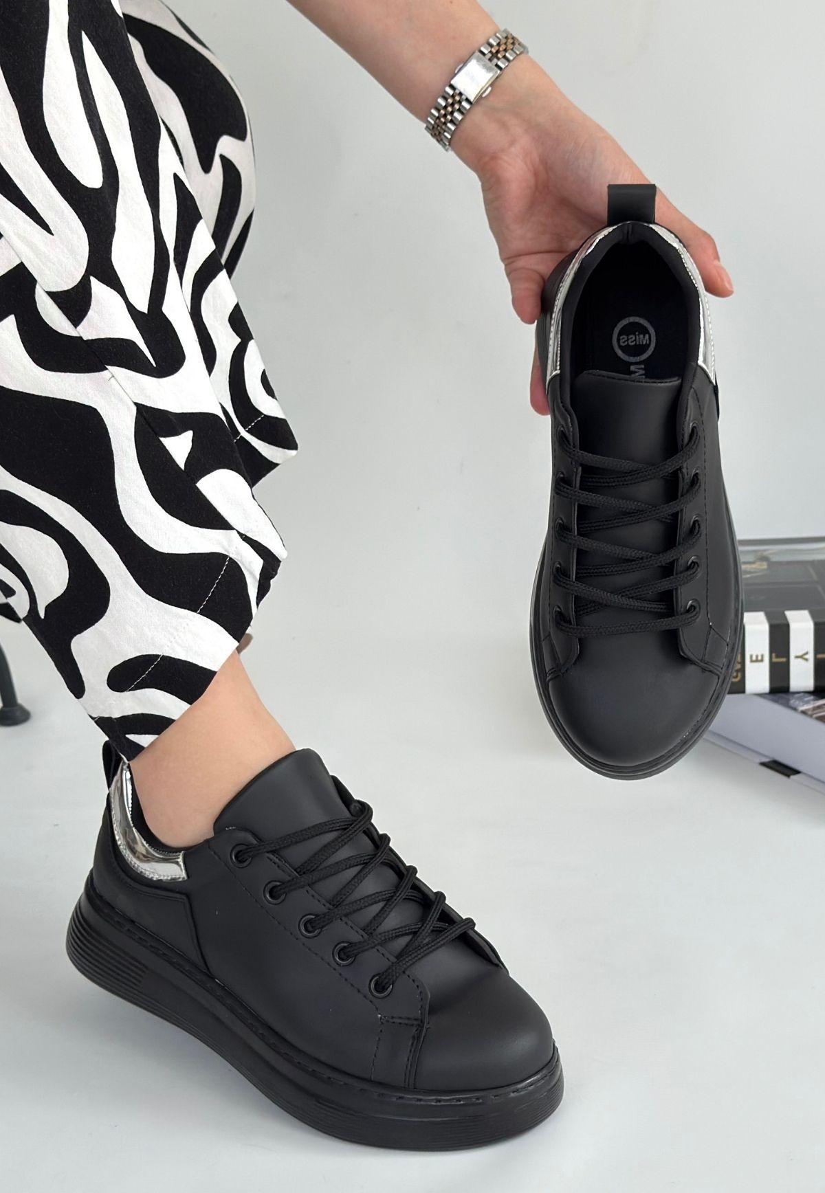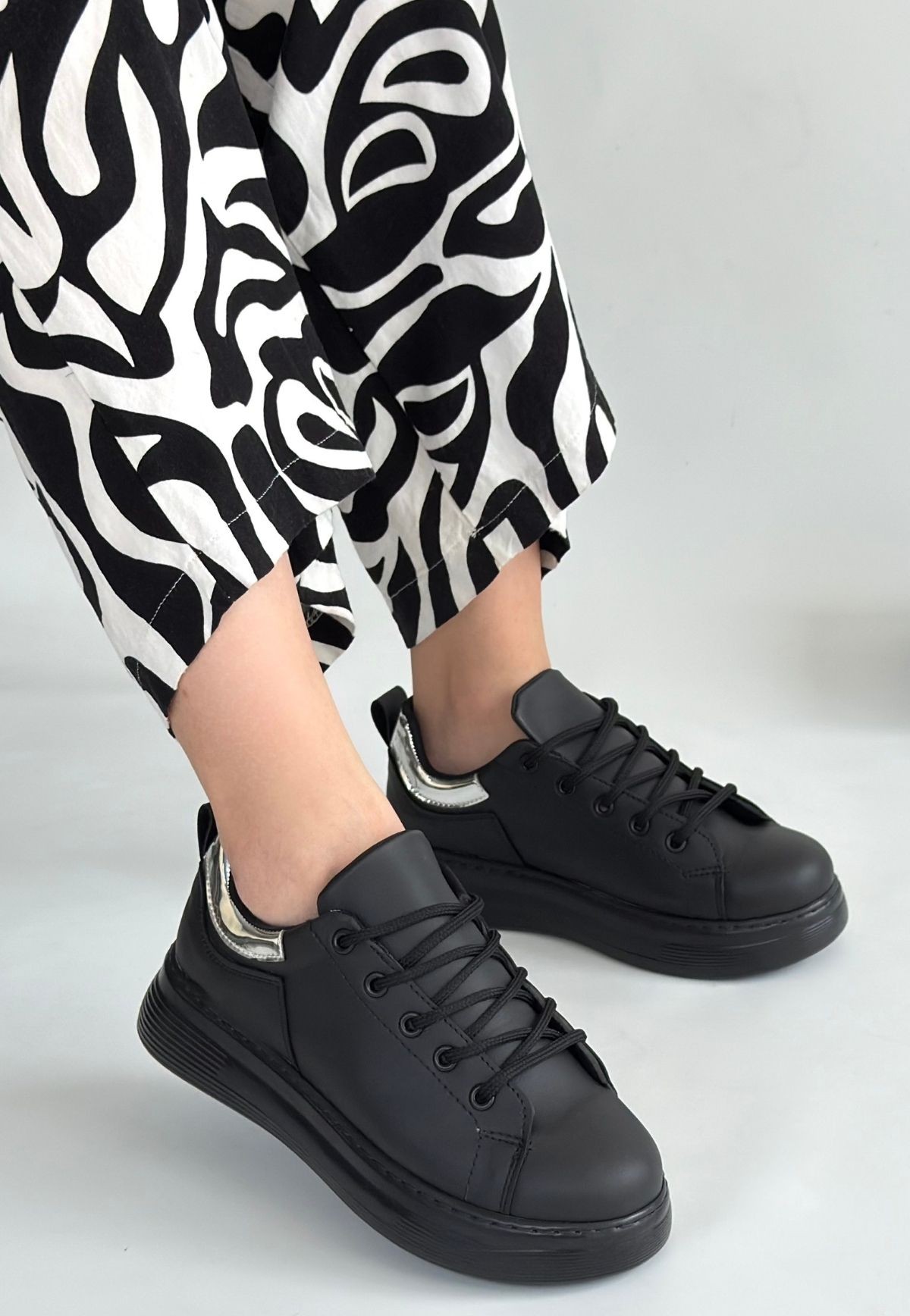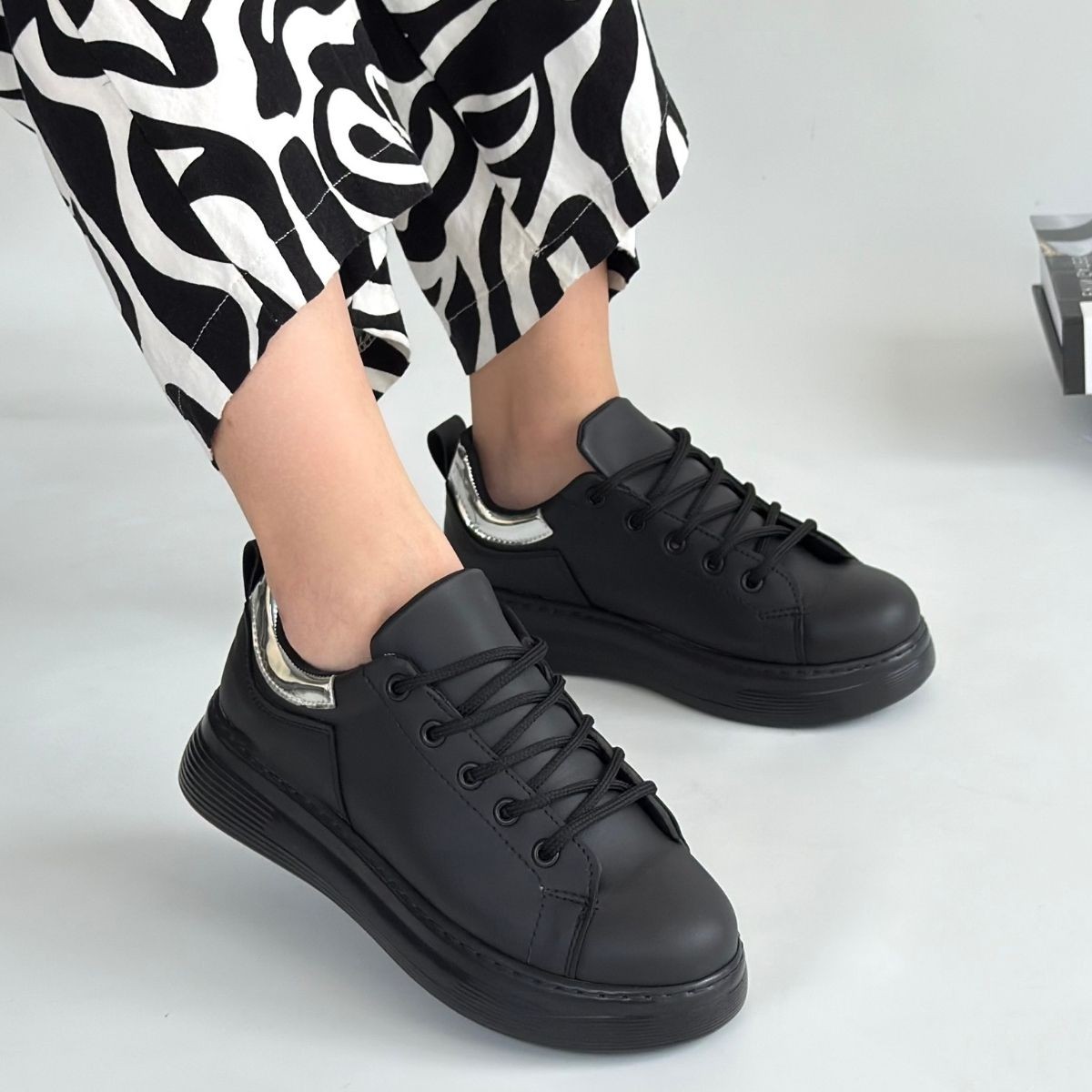 Cilt Kadın Konforlu Adım Sofio Siyah Bağcıklı Spor Ayakkabı