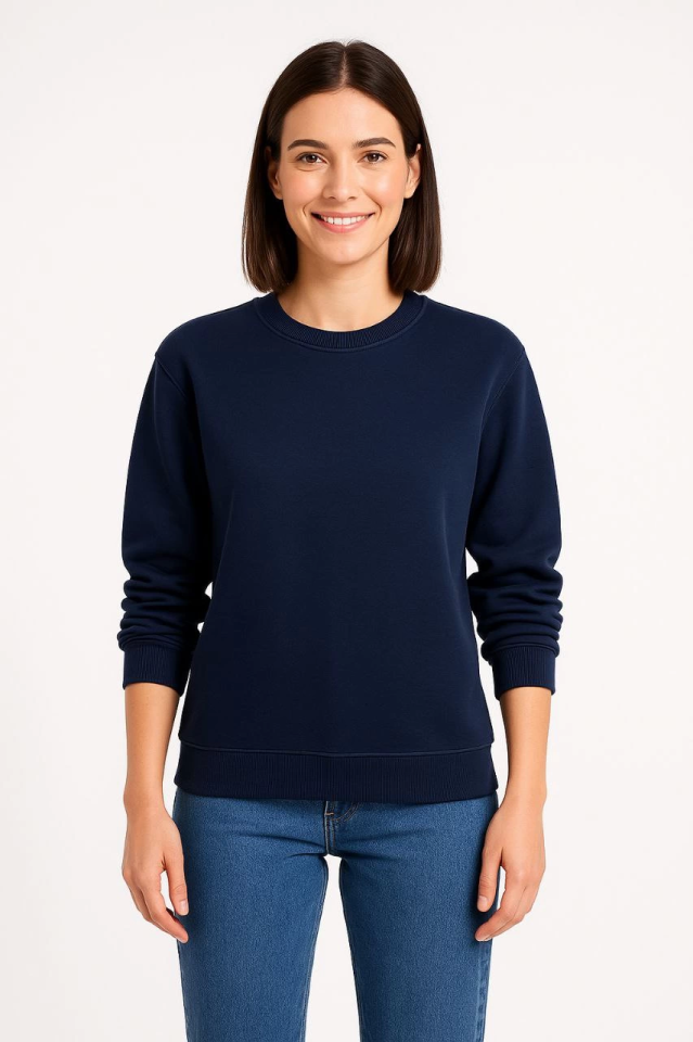 Üç İplik Düz Bisiklet Yaka SweatShirt – Lacivert