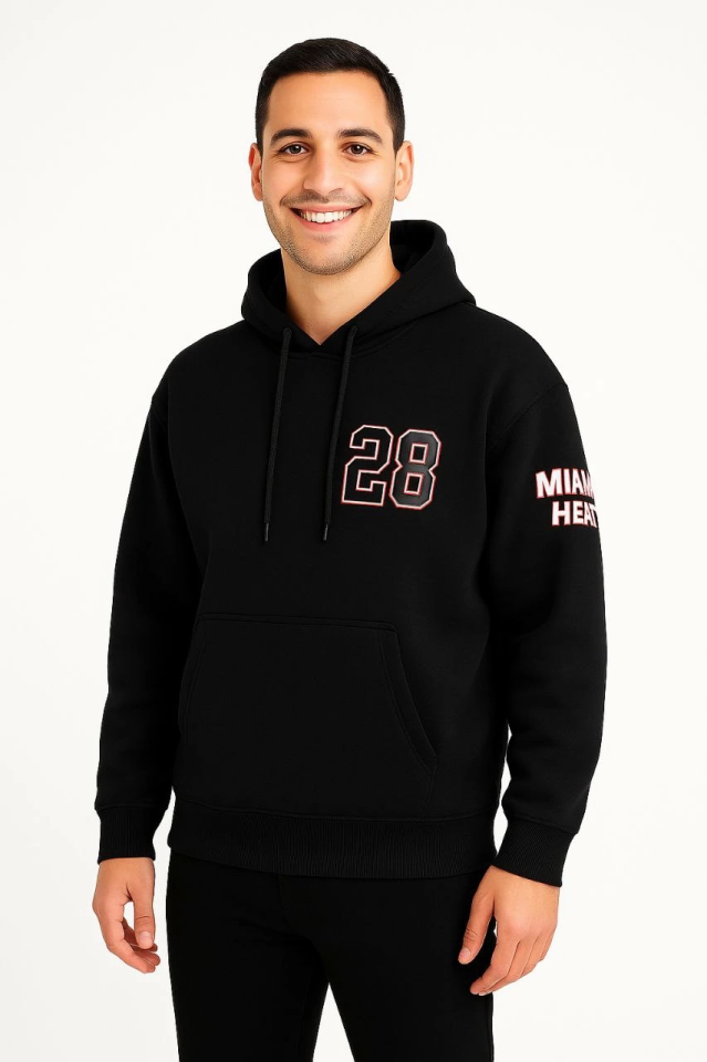 Üç İplik Kapüşonlu Ön Ve Arka Baskılı SweatShirt Hoodie – Siyah