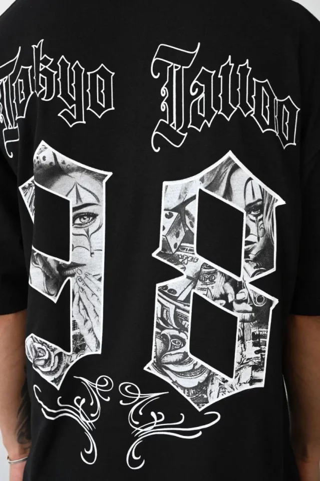 Unisex Baskılı Oversize T-Shirt – Siyah