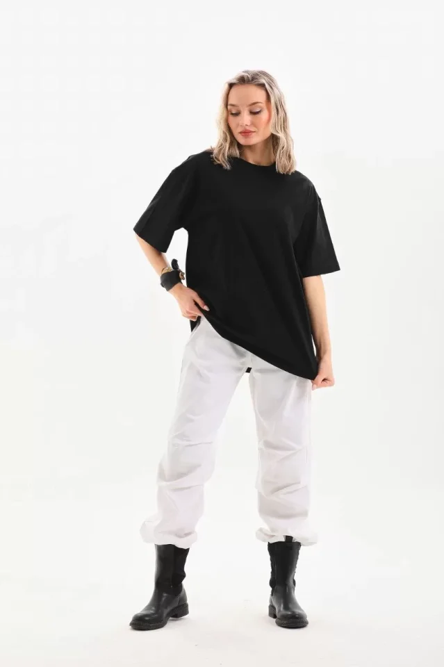 Süprem Unisex Günlük Stil Siyah 20/1 Penye Düz Kesim Oversize Tişört