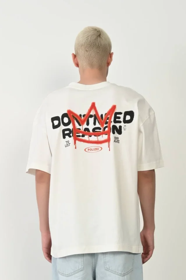 Unisex Bisiklet Yaka Baskılı Oversize T-Shirt – Beyaz