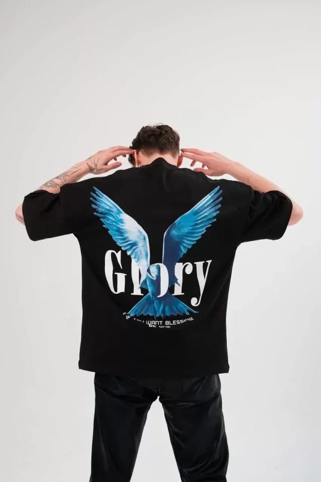 Unisex Bisiklet Yaka Baskılı Oversize T-Shirt – Siyah