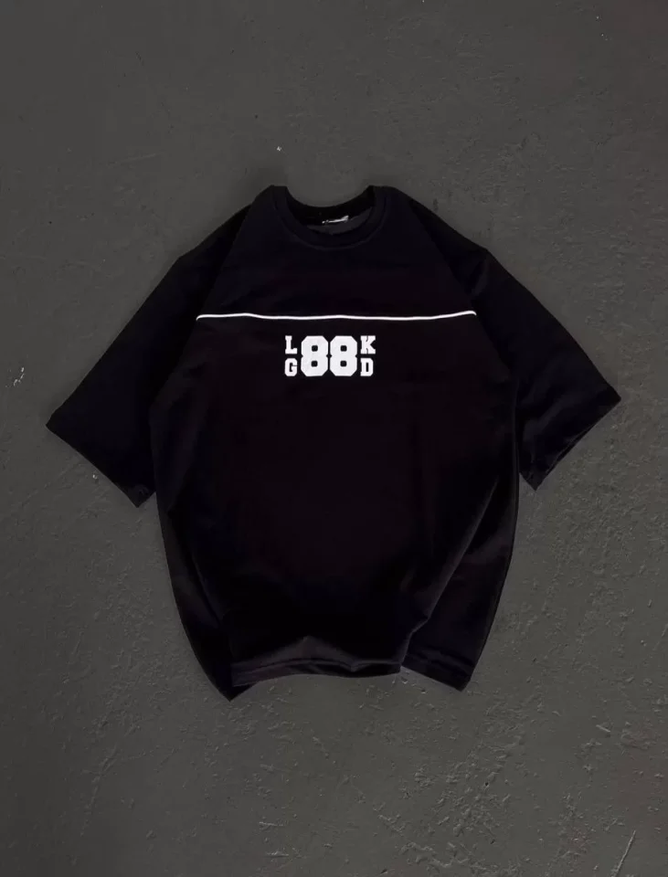 Unisex Bisiklet Yaka Baskılı Oversize T-Shirt – Siyah