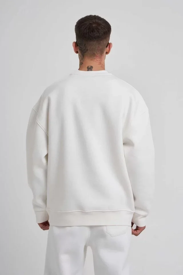Unisex Biskilet Yaka Üç İplik SweatShirt – Beyaz