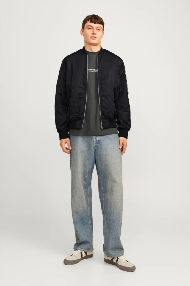 Unisex İçi Astarlı Düz Bomber Ceket – Siyah