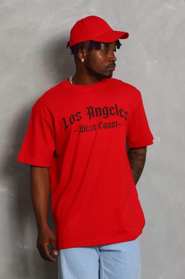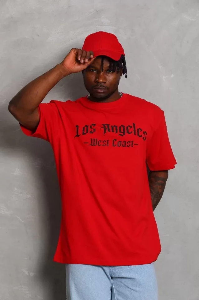 Unisex Oversize Baskılı Bisiklet Yaka T-Shirt – Kırmızı