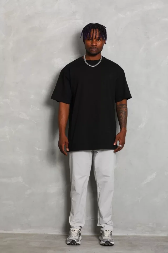 Unisex Oversize Düz Bisiklet Yaka T-Shirt – Siyah