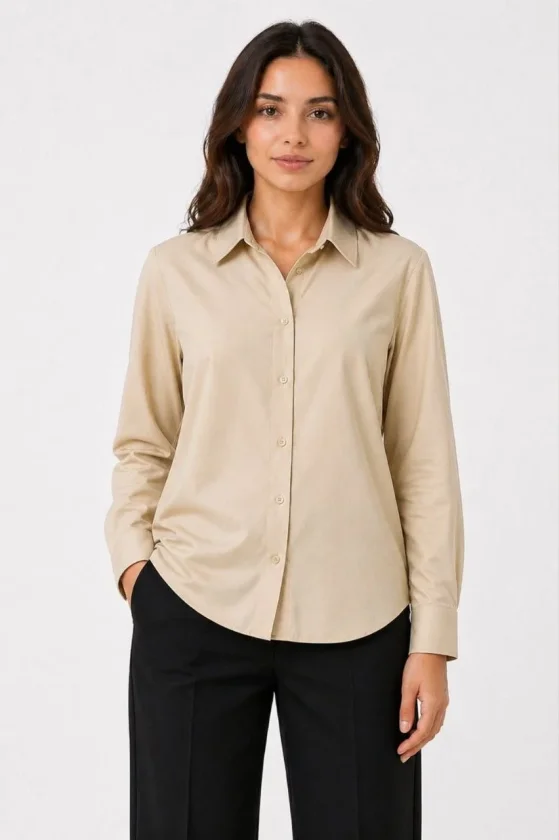 Uzun Kol Gömlek Düğmeli Klasik Yaka Günlük Ve Ofis Şıklığına Uygun – Bej