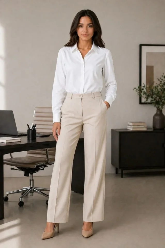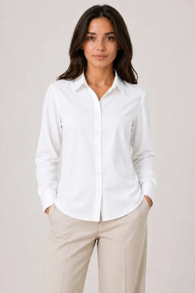 Uzun Kol Gömlek Düğmeli Klasik Yaka Günlük Ve Ofis Şıklığına Uygun – Beyaz