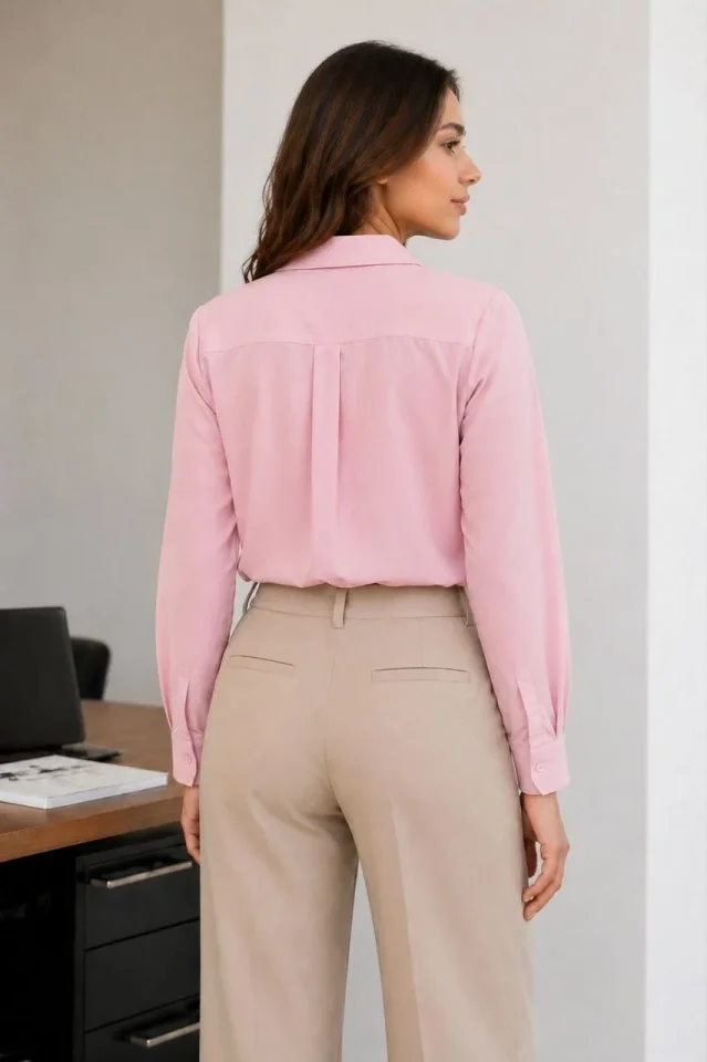 Uzun Kol Gömlek Düğmeli Klasik Yaka Günlük Ve Ofis Şıklığına Uygun – Toz Pembe