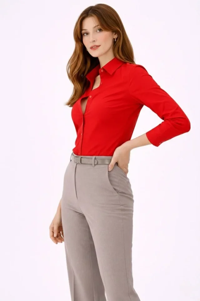 Uzun Kollu Gömlek Düğmeli Klasik Yaka Günlük Ve Ofis Şıklığına Uygun – Kırmızı