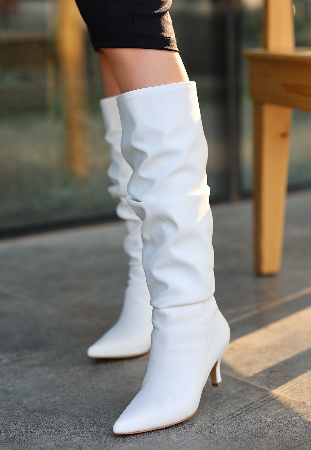 Cilt Kadın Modern Stil Zelya Beyaz Topuklu Çizme